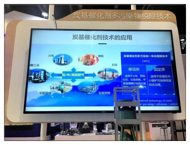 北京國能中電節能環保技術股份有限公司是國能中電集團旗下的控股子公司,主要從事節能環保業務。國能中電在展會中重點展示了一項新技術:炭基催化劑干法煙氣多種污染物一體化脫除技術。該技術是國能中電基于中國科學院的國家863課題超過20年的實驗室研究進行的工業成果轉化,并于今年上半年在濟南鋼鐵獲得工業級試驗成功。